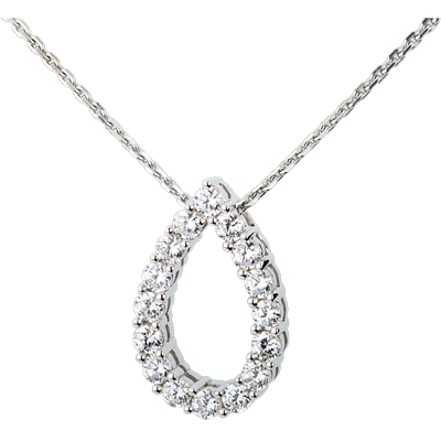 Ein Klagelied der Liebe in Form einer glitzernden Träne. Dieses schöne Diamantcollier verkörpert Süsse und Zartheit. Mit Goldkette 750/1000. Mit Kette 42 cm + Verlängerung von 3 cm; 750/-. 16 Diamanten : 1.05 Karat - Weißgold (750/-): 5.3 g. Weitere Abmessungen