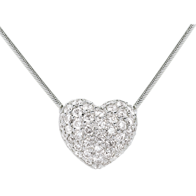 Dieses einzigartige Herzcollier steht für funkelnde Leidenschaft. Mit Goldkette 750/1000. Mit Kette 42 cm + Verlängerung von 3 cm; 750/-. 50 Diamanten : 0.85 Karat - Weißgold (750/-): 6.4 g. Weitere Abmessungen
