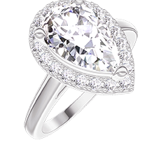 Ring Weißgold 750/-(18Kt) - Labordiamant Tropfen 1 Karat - Halo Labordiamant