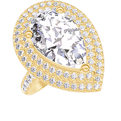 Ring Gelbgold 750/-(18Kt) - Labordiamant Tropfen 2 Karat - Halo Labordiamant - Fassung Labordiamant