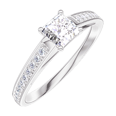 Ring Weißgold 375/-(9Kt) - Diamant Prinzess 0.3 Karat - Fassung Diamant