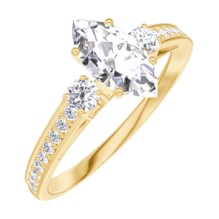 Ring Gelbgold 750/-(18Kt) - Diamant Marquise 0.5 Karat - Seitliche Steine Diamant - Fassung Diamant