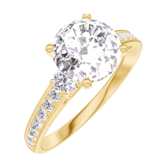 Ring Gelbgold 750/-(18Kt) - Diamant rund 1 Karat - Seitliche Steine Diamant - Fassung Diamant