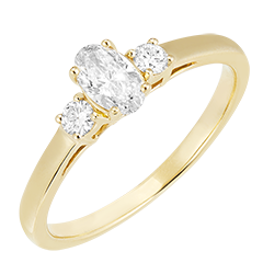 Ring Gelbgold 375/-(9Kt) - Labordiamant Oval 0.3 Karat - Seitliche Steine Labordiamant