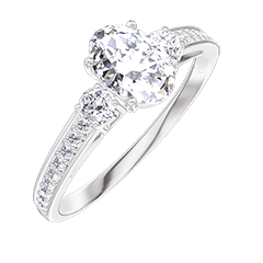 « L'ATELIER » NR. 182727Ring Weißgold 750/-(18Kt) - Labordiamant Oval 0.5 Karat - Seitliche Steine Labordiamant - Fassung Labordiamant 5
