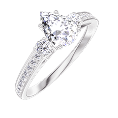 Ring Weißgold 750/-(18Kt) - Labordiamant Tropfen 0.5 Karat - Seitliche Steine Labordiamant - Fassung Labordiamant