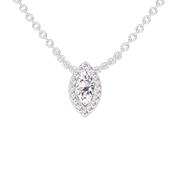 Collier Weißgold 750/-(18Kt) - Labordiamant Marquise 0.3 Karat - Halo Labordiamant - Kette Ankerkette