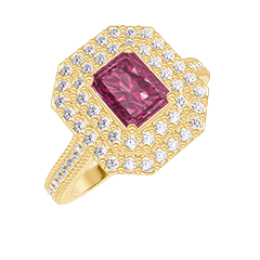« L'ATELIER » NR. 404348Ring Gelbgold 750/-(18Kt) - Rubin Rechteckig 0.5 Karat - Halo Diamant - Fassung Diamant