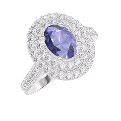 Ring Weißgold 750/-(18Kt) - Blauer Saphir Oval 0.5 Karat - Halo Diamant - Fassung Diamant