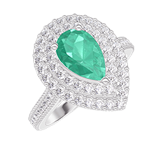 « L'ATELIER » NR. 406247Ring Weißgold 750/-(18Kt) - Smaragd Tropfen 0.5 Karat - Halo Diamant - Fassung Diamant