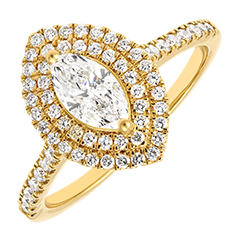 « L'ATELIER » NR. 407375Ring Gelbgold 375/-(9Kt) - Labordiamant Marquise 0.5 Karat - Halo Labordiamant - Fassung Labordiamant