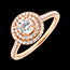 Ring Roségold 375/-(9Kt) - Labordiamant Rund 0.5 Karat - Halo Labordiamant - Fassung Labordiamant