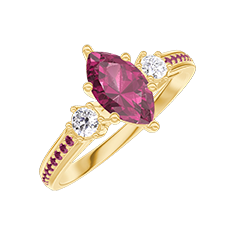 Ring Gelbgold 750/-(18Kt) - Rubin Marquise 0.5 Karat - Seitliche Steine Diamant - Fassung Rubin