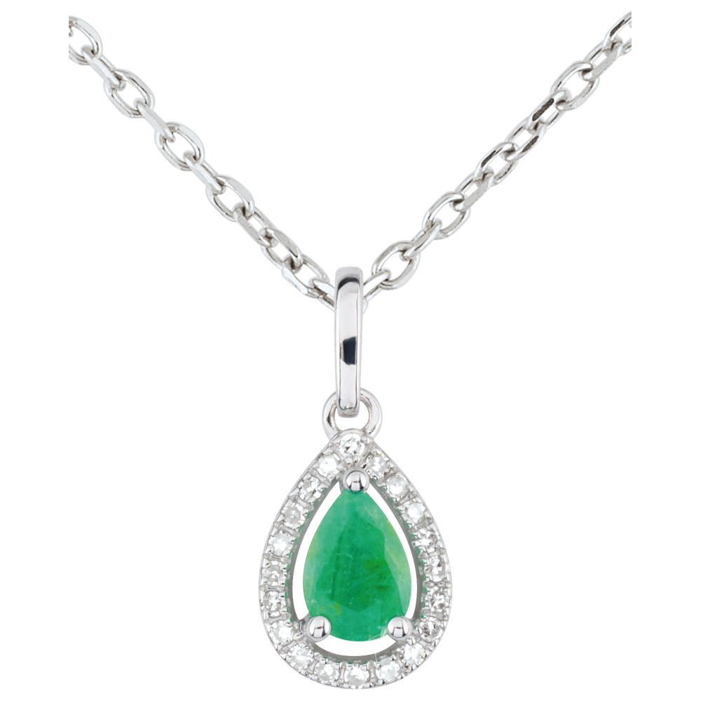 Diese Schönheit aus Gold und Diamanten umrandet einen wertvollen Smaragd. Sie wird Sie erstrahlen lassen. Ohne Kette. 20 Diamanten : 0.08 Karat - Weißgold (375/-): 0.5 g. Smaragd : 1 - Total: 0.4 Karat Weitere Abmessungen