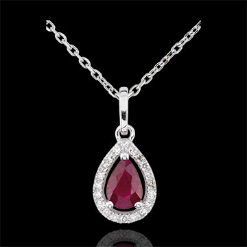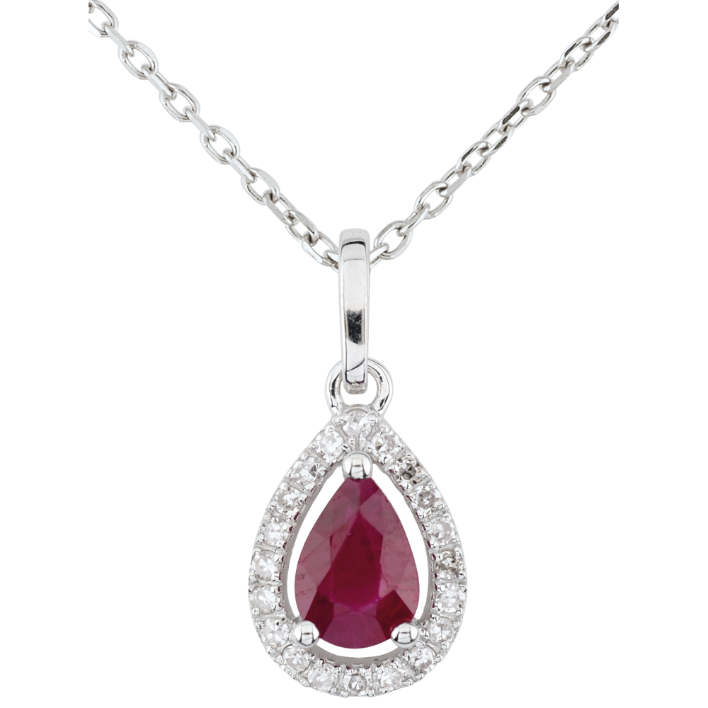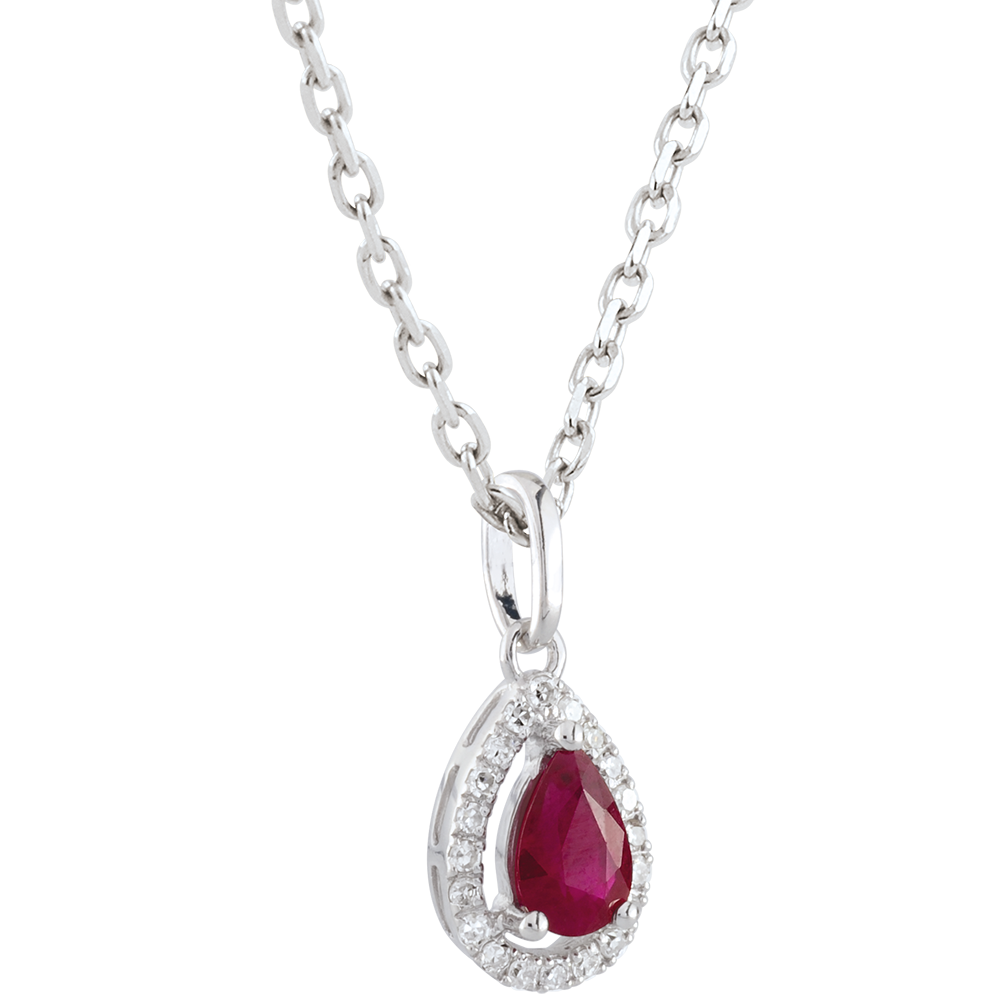 Diese Schönheit aus Gold und Diamanten umrandet einen feurigen und funkelnden Rubin. Sie wird Sie erstrahlen lassen. Ohne Kette. 20 Diamanten : 0.08 Karat - Weißgold (375/-): 0.5 g. Rubin : 1 - Total: 0.47 Karat Weitere Abmessungen