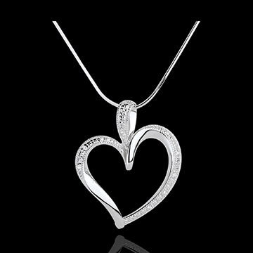 Dieses zarte Herz aus Weissgold, mit feinen Diamanten besetzt, strahlt Sinnlichkeit und Wärme aus. Ohne Kette. 10 Diamanten : 0.08 Karat - Weißgold (750/-): 2 g. Weitere Abmessungen