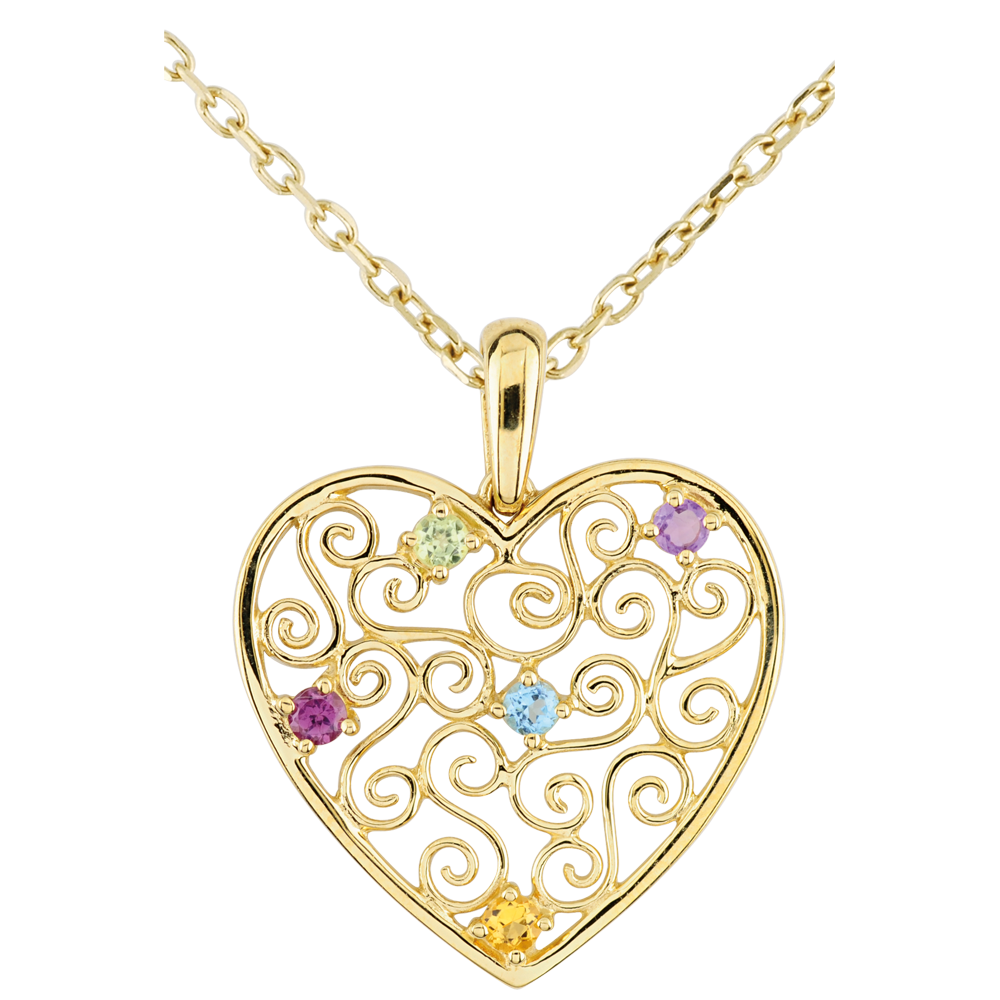 PARADIESVOGEL NR. 10Anhänger Herz - Gelbgold 375/-(9Kt) - Amethyst, Citrin gelb, Olivine, Rhodolit, Blauer Topas ID : 2291 5 (6)