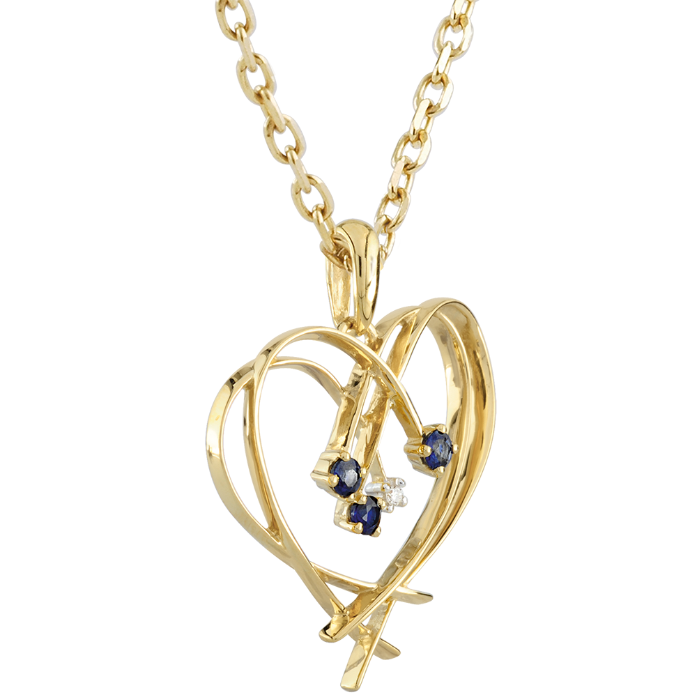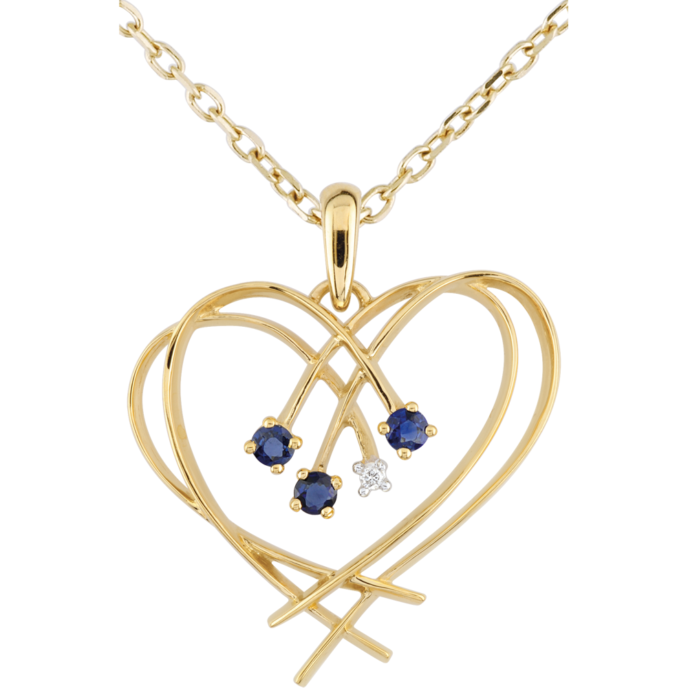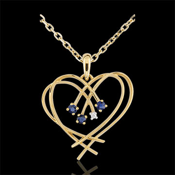 Dieses stilvolle Collier ist ein Geflecht aus zarten Gliedern aus Gelbgold, verziert mit edlen Saphiren und einem Diamant.