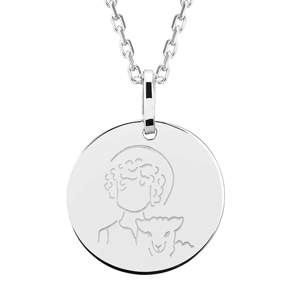 Anhänger Jesuskind mit Lamm zum Gravieren - Weißgold, 9 Karat