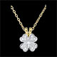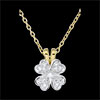 Ein diamantbesetztes Anhänger in Kleeblattform aus Weißgold, dessen besonderes Detail seine gelbgoldene Öse darstellt. Ein klassisches Schmuckstück, welches problemlos mit einer einer Kette in Gelb- oder Weißgold kombiniert werden kann. Ohne Kette. 13 Diamanten : 0.15 Karat - Weiß-und Gelbgold (375/-): 1.3 g. Weitere Abmessungen