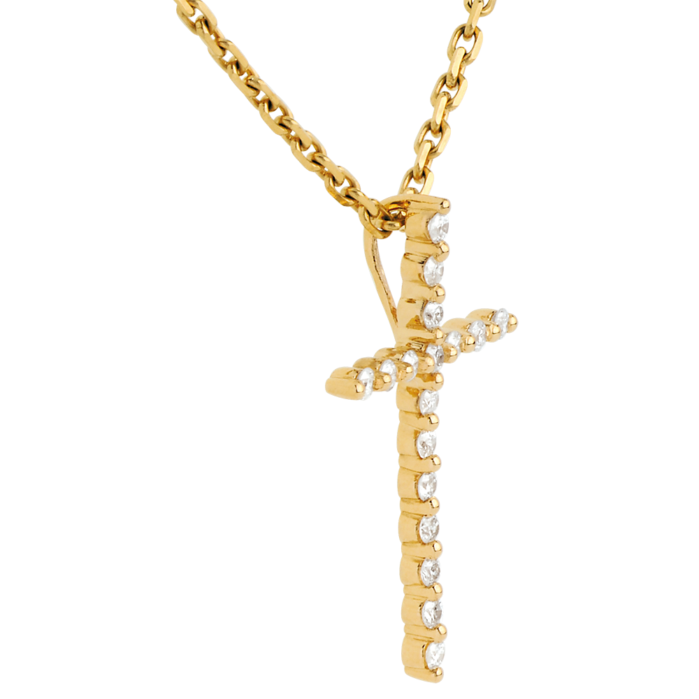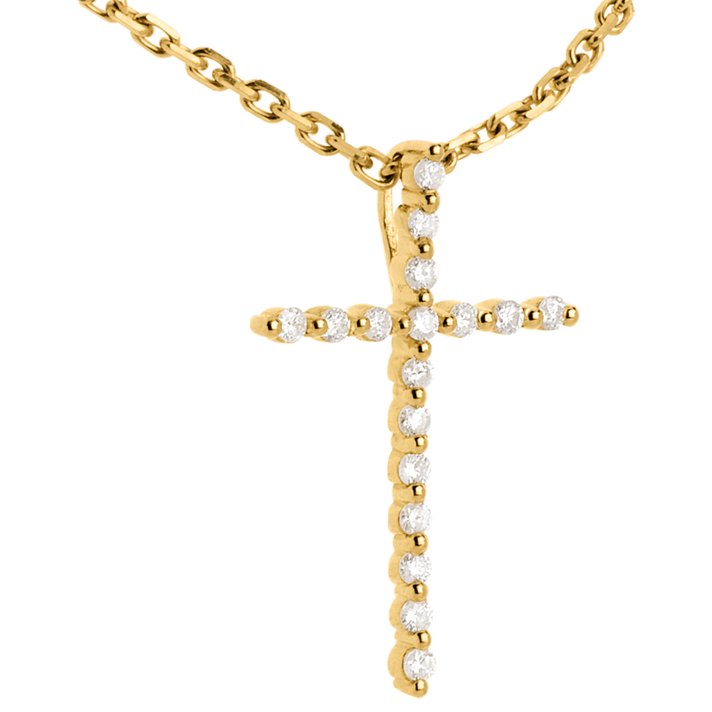 Dieser feine und zarte Kreuzanhänger aus 9K Gelbgold ist mit 17 funkelnden Diamanten pavé besetzt. Das dezente Design verleiht dem religiösen Schmuckstück eine elegante und zurückhaltende Ausstrahlung. Der Anhänger aus der Kollektion Ursprung verbindet klassische Reinheit mit zeitloser Schönheit und ist angenehm leicht zu tragen. Ein sorgfältig gefertigtes Schmuckstück, das durch seine feine Verarbeitung und sein strahlendes Funkeln besticht.… Mehr sehen Technische Informationen