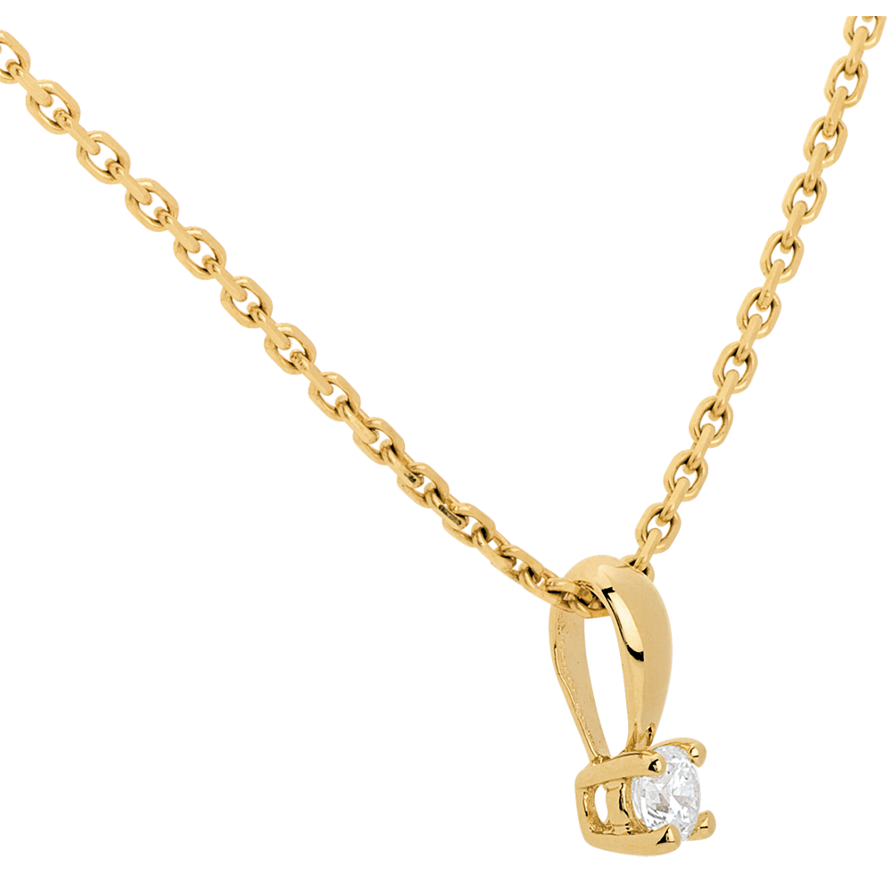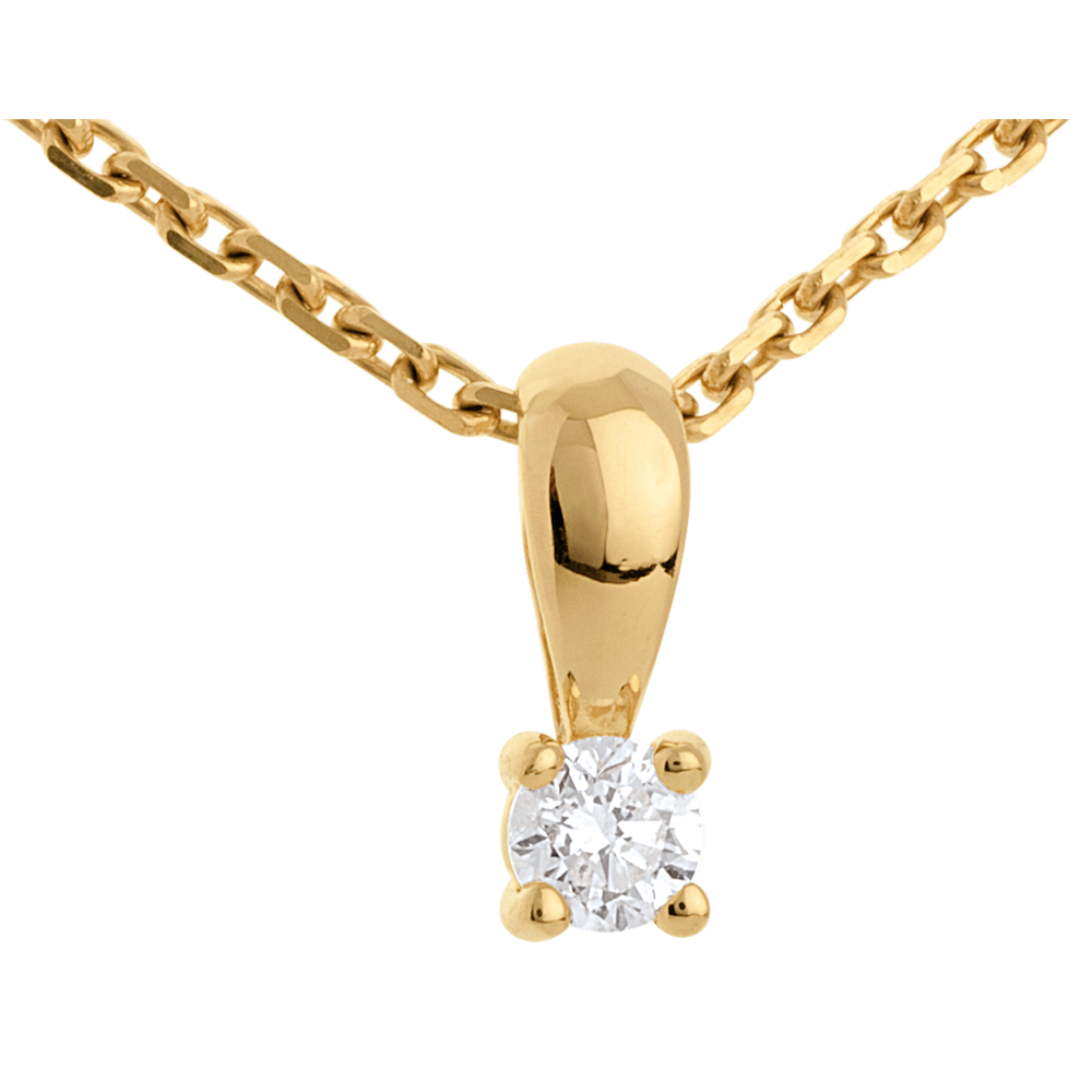 Der funkelnde Diamant in einer 4er Krappenfassung verkörpert zarte Eleganz. Ohne Kette. 1 Diamant : 0.16 Karat - Gelbgold (750/-): 0.4 g. Weitere Abmessungen