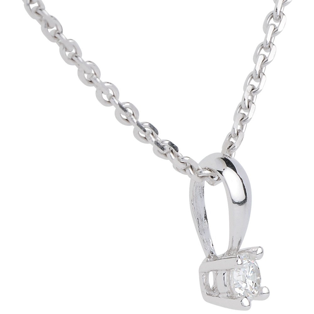 Dieser funkelnde Diamant in einer 4er Krappenfassung verkörpert zarte Eleganz. Ohne Kette. 1 Diamant : 0.16 Karat - Weißgold (750/-): 0.4 g. Weitere Abmessungen
