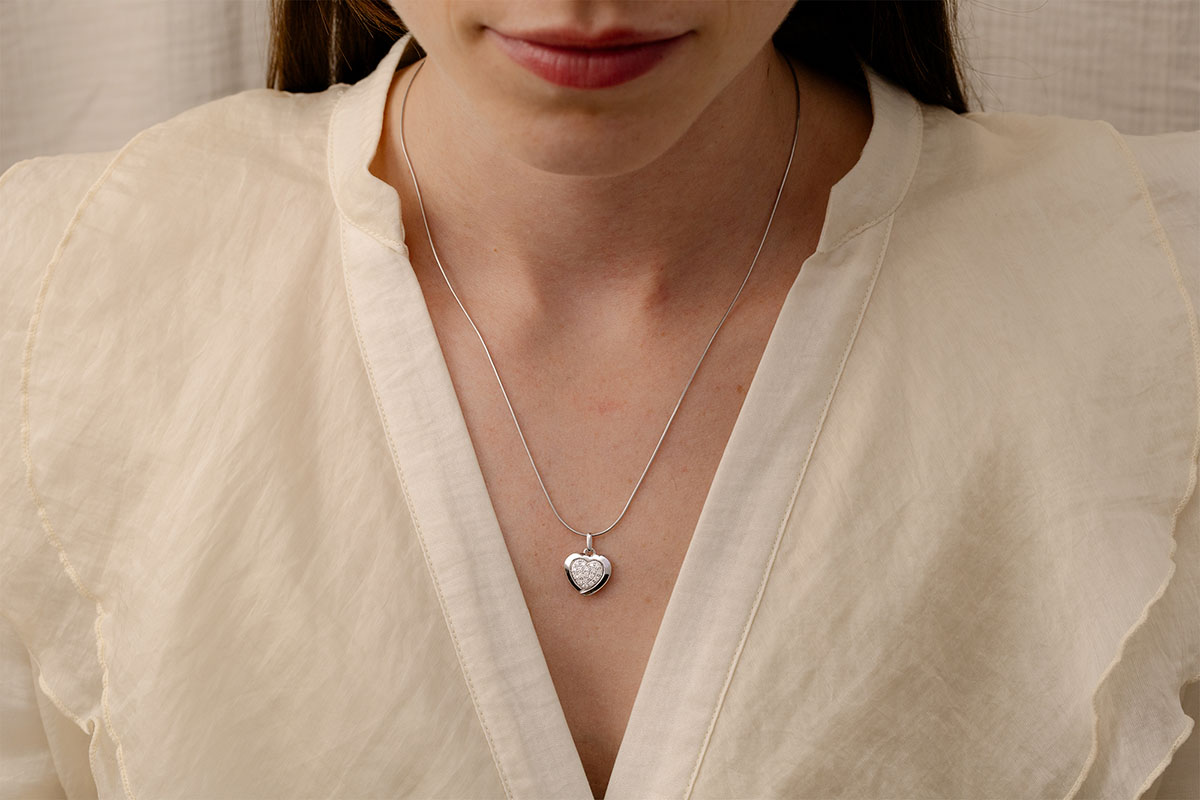 Die Zartheit in Form eines Anhängers: ein kleines Herz mit einem Kern aus Diamanten für unvergessliche Momente.