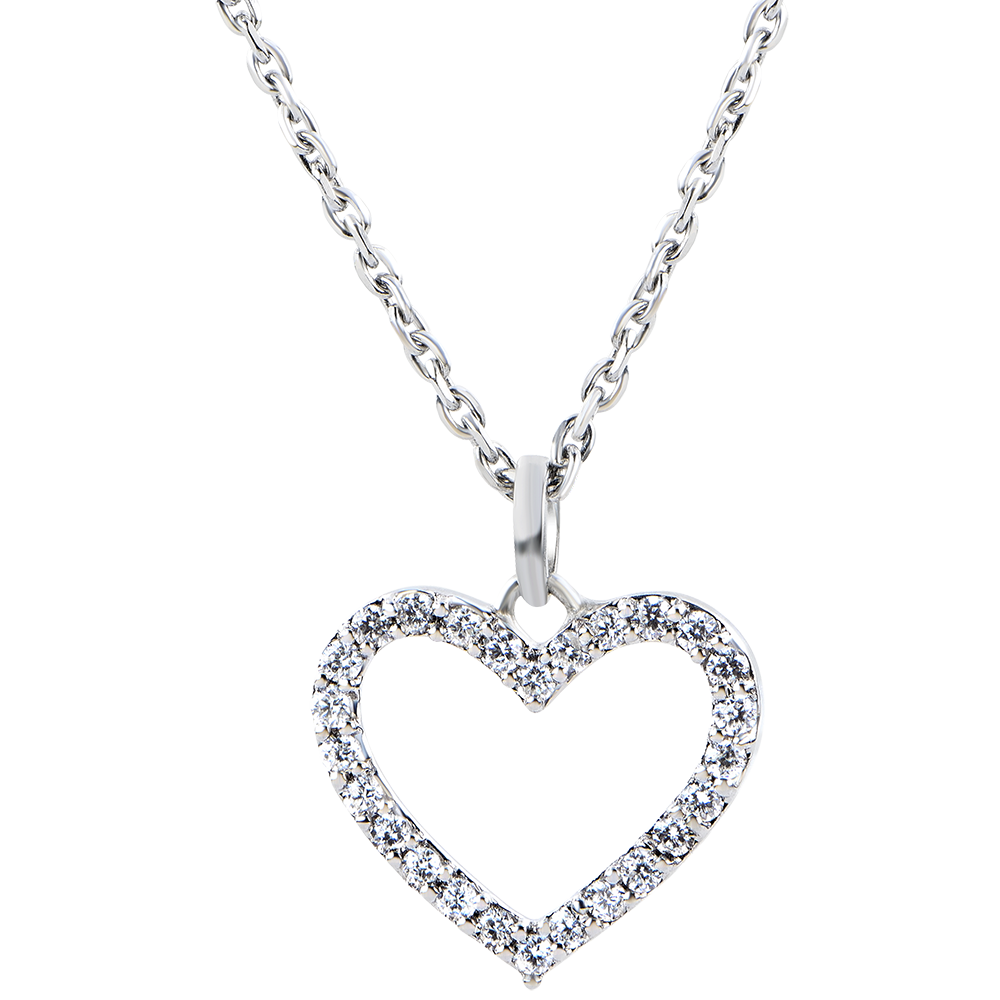 Herzanhänger aus Weißgold mit Diamanten besetzt. Eine schlichte, zeitlose Ikone für eine klare und unmissverständliche Botschaft.