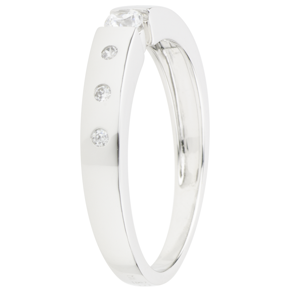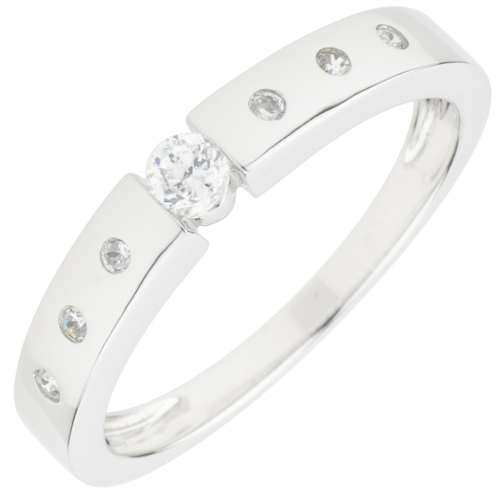 - Zentraler runder Diamant 0,10 ct mit 7 pavé-gesetzten Brillanten
