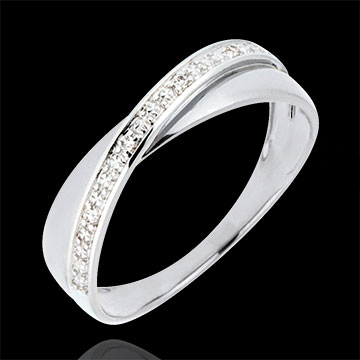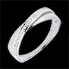 Ein gelbgoldener Ring wird auf elegante Weise von einem brillantbesetzten Band in Weißgold durchquert.