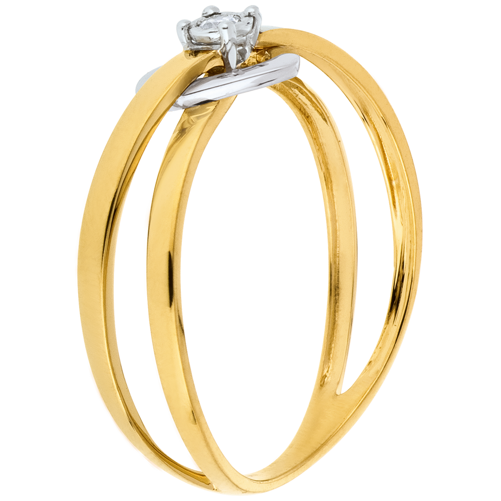 Ein an zwei Ringen aus Gelbgold schwingendes Herz aus Weißgold wird gekrönt von einem in Weißgold gefassten Diamanten. 1 Diamant : 0.03 Karat - Weiß-und Gelbgold (750/-): 1.7 g. Weitere Abmessungen