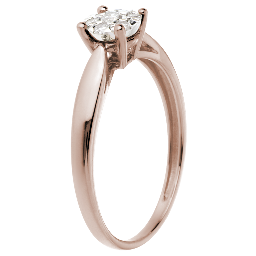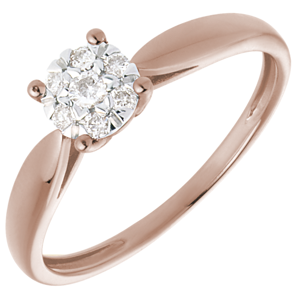 Dieser zarte Ring wird von einer Sphäre aus sieben funkelnden Diamanten gekrönt, welche von vier Krappen gehalten werden. 7 Diamanten : 0.12 Karat - Rotgold (750/-): 1.9 g. Pavé aus natürlichen Diamanten : - Weitere Abmessungen