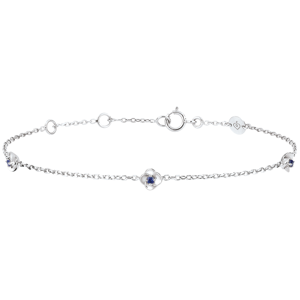 Die Blütenblätter dieses grazilen Armbands öffnen sich und offenbaren ein Herz aus Saphir. Ein Armband für jeden Tag. Weißgold (375/-): 1 g. Blauer Saphir : 3 - Total: 0.03 Karat Weitere Abmessungen