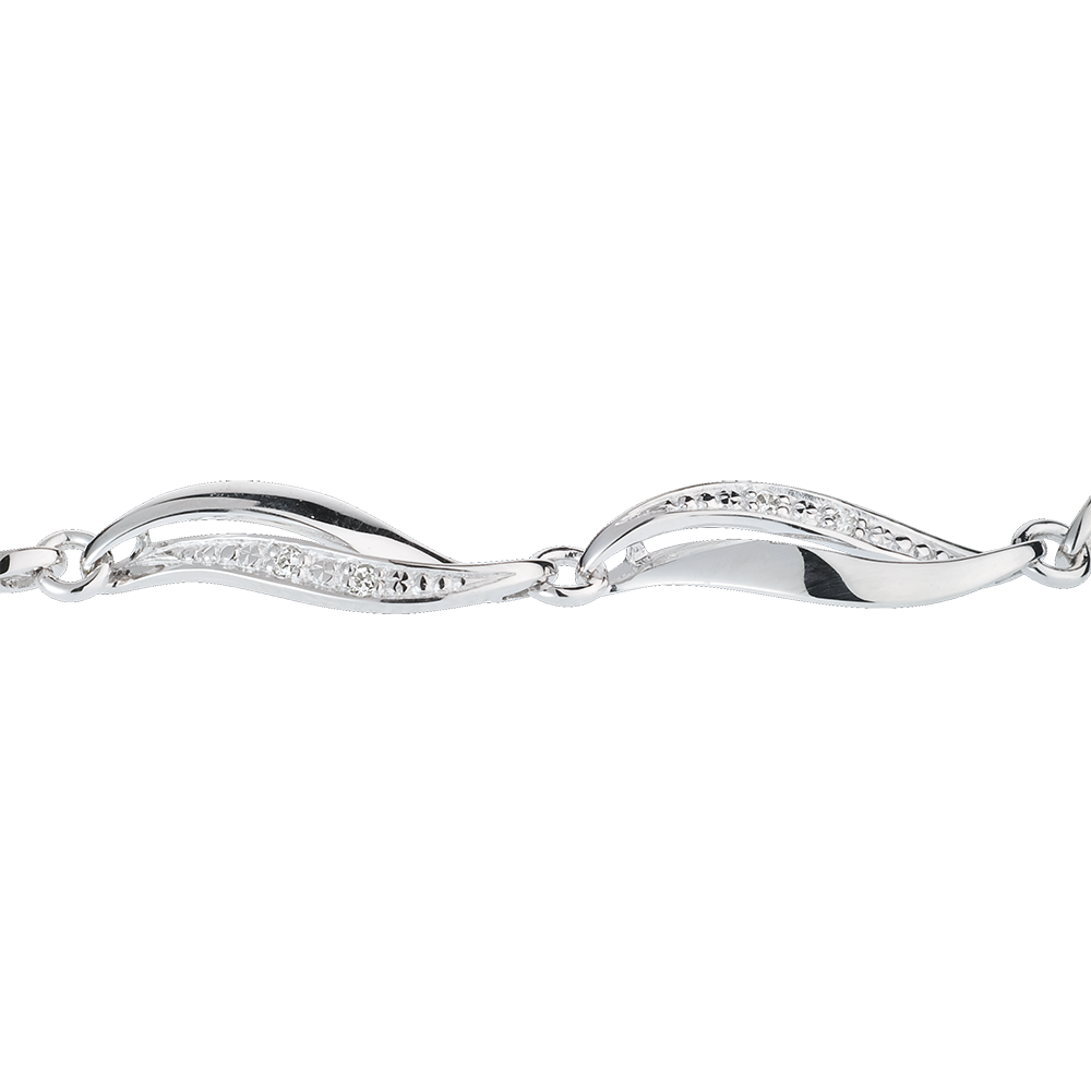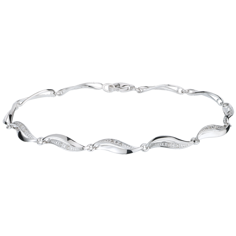Dieses dezente Armband besteht aus verschlungenen Gliedern aus Weißgold und diamantenbesetzem Weißgold.