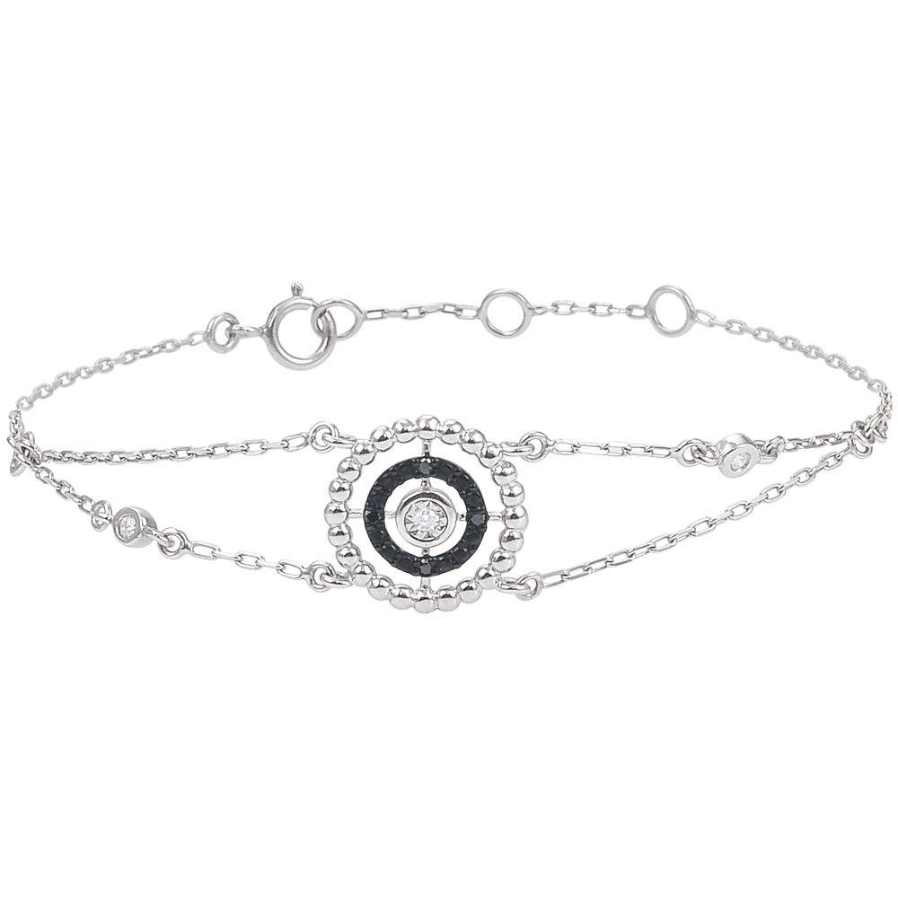 Eine Vielzahl kleiner Goldperlen umrandet auf elegante Weise einen Kranz aus erlesenen Diamanten und birgt einen umwerfenden Solitär in seiner Mitte. Längenverstellbares Armband:18, 17 und 16 Zentimeter. Motivmaße: 11mm Länge und 11mm Breite.