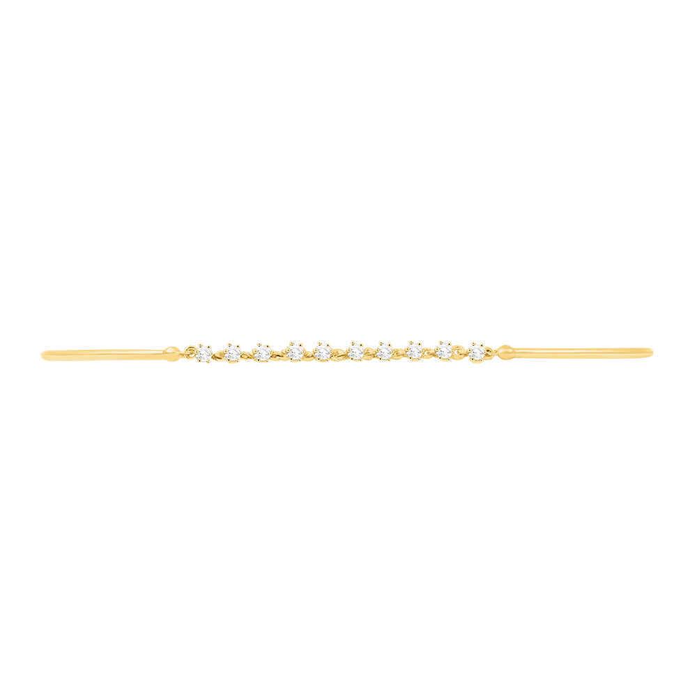 Gracile ist ein Armreif aus Gelbgold, verziert mit feinen Diamanten. Seine zarte Kette und das schlichte Design machen ihn zu einem unverzichtbaren Stück für einen Hauch von Finesse und Eleganz.