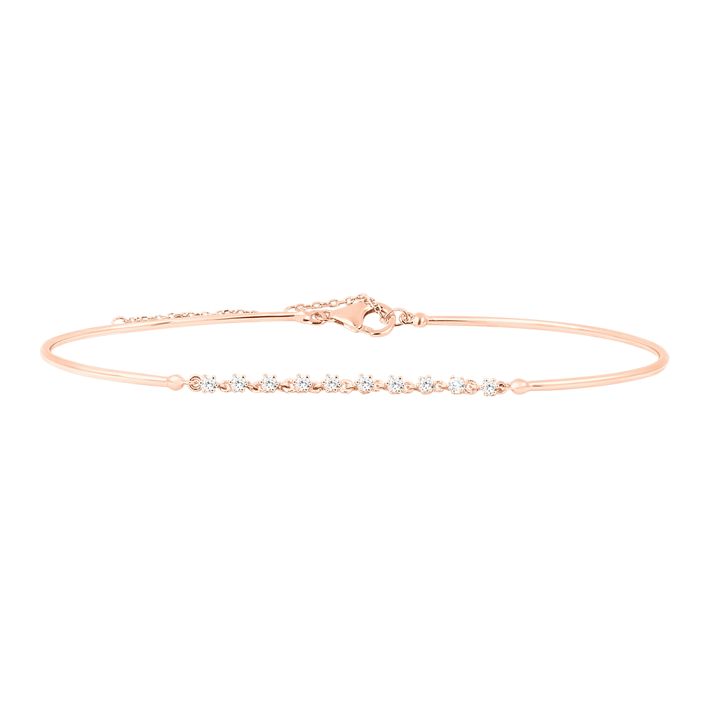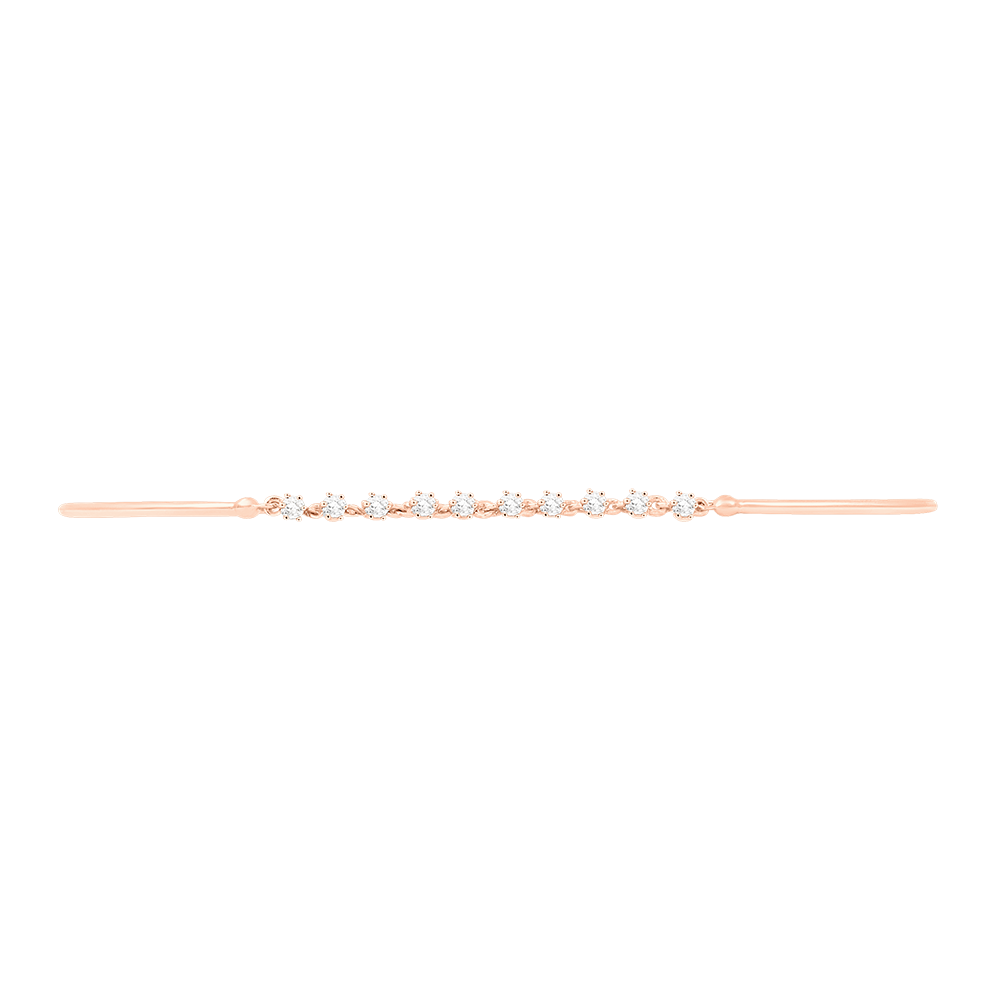 Gracile ist ein Armreif aus Roségold, verziert mit feinen Diamanten. Seine zarte Kette und das schlichte Design machen ihn zu einem unverzichtbaren Stück für einen Hauch von Finesse und Eleganz. 10 Diamanten : 0.19 Karat - Rotgold (375/-): 2.7 g. Weitere Abmessungen