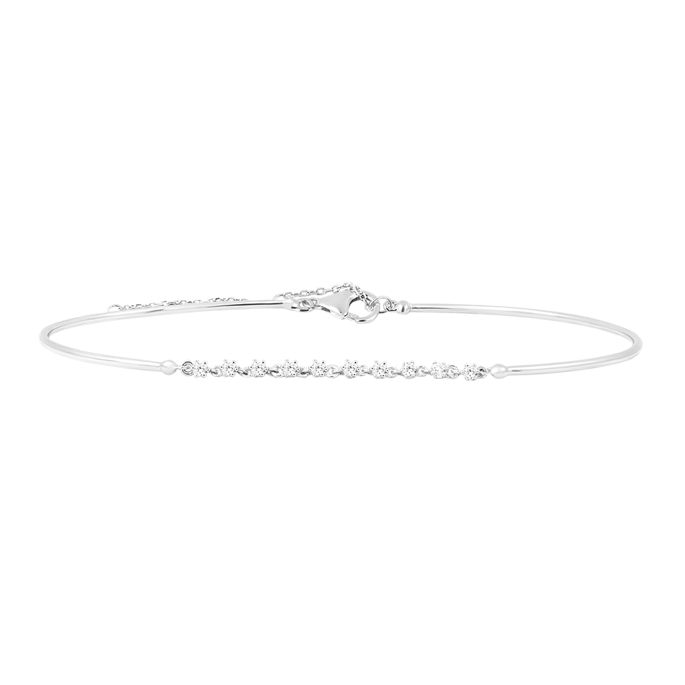 "Gracile" ist ein Armreif aus Weißgold, verziert mit feinen Diamanten. Seine zarte Kette und das schlichte Design machen ihn zu einem unverzichtbaren Stück für einen Hauch von Finesse und Eleganz. 10 Diamanten : 0.19 Karat - Weißgold (375/-): 2.7 g. Weitere Abmessungen