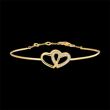 Ein zart und romantisch verschlungener Armreif, eine leichte Melange aus Gelbgold und Diamanten. Armreif mit praktischem Kettenverschluss. 22 Diamanten : 0.14 Karat - Gelbgold (750/-): 4.5 g. Weitere Abmessungen