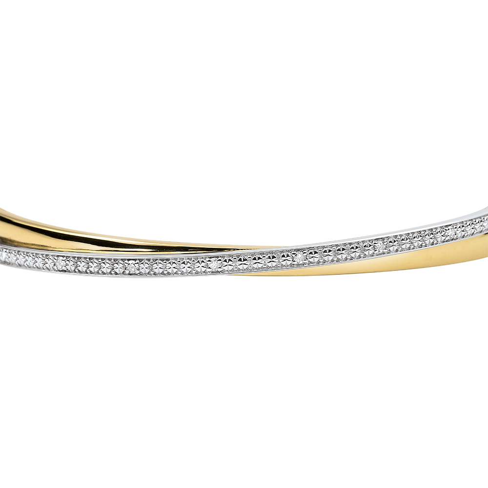 Ein gelbgoldener Reif wird auf elegante Weise von einem brillantbesetzten Band durchzogen.