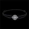 Eine Vielzahl kleiner Goldperlen umrandet auf elegante Weise einen Kranz aus erlesenen Diamanten und birgt einen umwerfenden Solitär in seiner Mitte. Dieses Motiv ist an einem schwarzen Textilband befestigt, welches dem Schmuckstück eine moderne Note verleiht.
