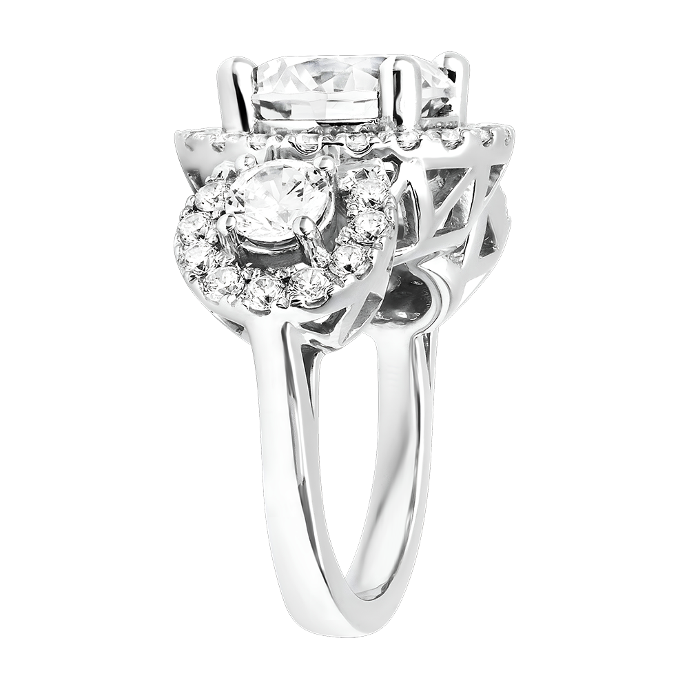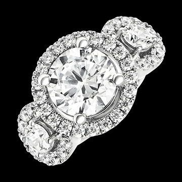 - Trilogie-Design mit pavé Halo zur Verstärkung der Lichtreflexion
