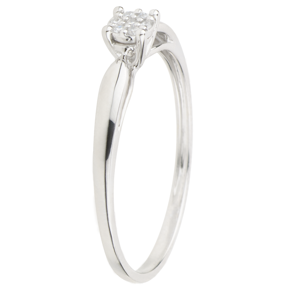 Eine Myriade aus Diamanten, wie Sterne im Rendez- vous, bildet einen Schwungvollen Solitär. 7 Diamanten : 0.04 Karat - Weißgold (750/-): 1.2 g. Pavé aus natürlichen Diamanten : 7 - Total: 0.04 Karat Weitere Abmessungen