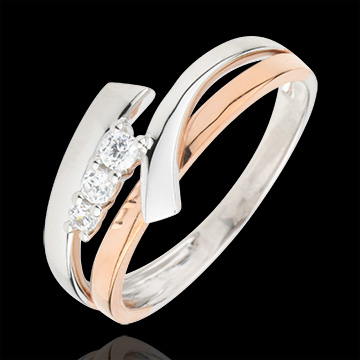 Verlobungsring Kostbarer Kokon - Trilogie Variation - Rosé- und Weißgold - 3 Diamanten - 18 Karat