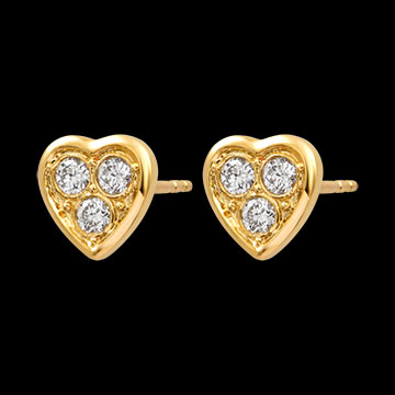 Zwei Herzen, jeweils mit sechs feinen Diamanten besetzt, in einem klaren, eleganten Design.Eine leuchtende, gefühlvolle Note – dezent und stilvoll. Gelbgold (375/-): 1.1 g. Weitere Abmessungen