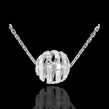 Diese überwältigende Spiralenform ist ein funkelnder Ausdruck geheimnisvoller Liebe. Mit Kette 42 cm + Verlängerung von 3 cm; 375/-. 11 Diamanten : 0.07 Karat - Weißgold (375/-): 2 g. Weitere Abmessungen