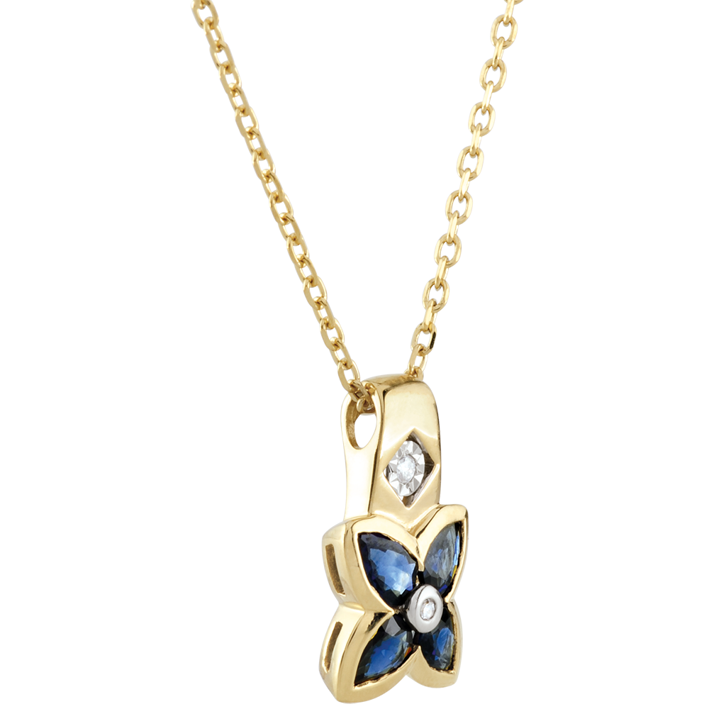 Ein funkelnder Stern besetzt mit vier Saphiren mit einem Diamanten im innneren.