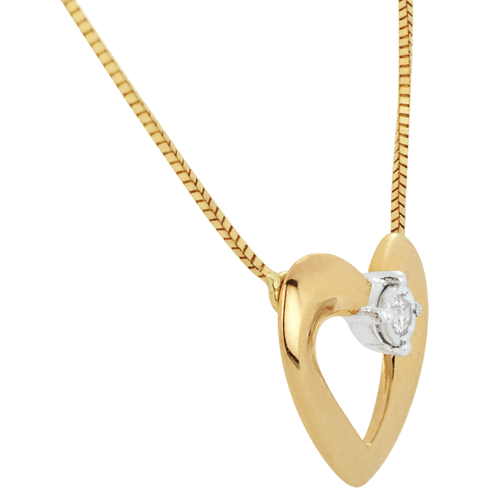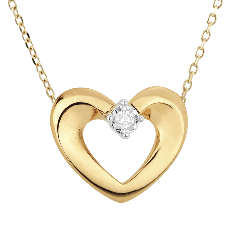 Ein edles Herz aus Gelbgold, versehen mit einem Solitär. Mit verstellbarer Goldkette in 9 Karat - 42 cm und 45 cm: 0.55mm Mit Kette 42 cm + Verlängerung von 3 cm; 375/-. 1 Diamant : 0.02 Karat - Gelbgold (375/-): 1.3 g. Weitere Abmessungen
