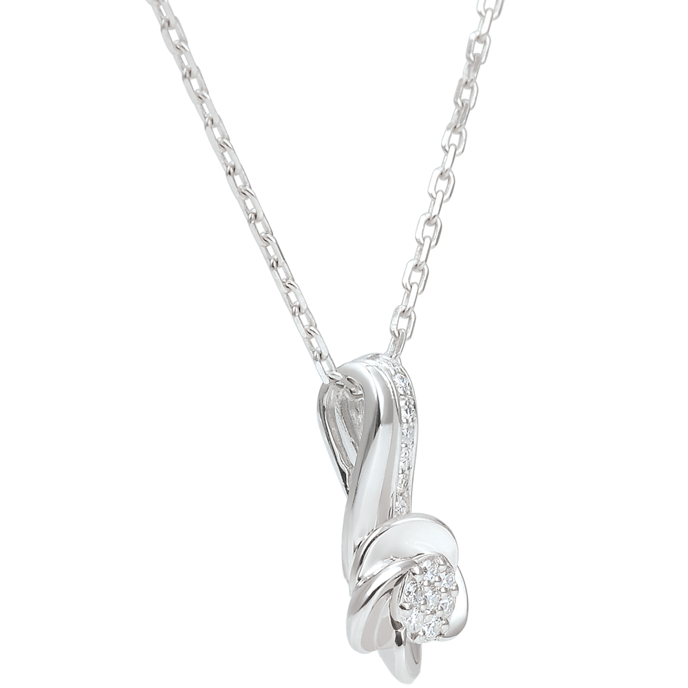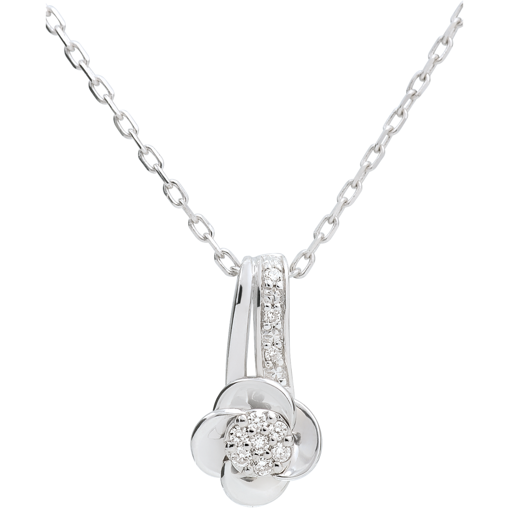Diese blühenden Rosen birgen ein Diamantherz in ihrem Inneren, welches bis in die Ewigkeit zu strahlen scheint. Mit Kette 42 cm + Verlängerung von 3 cm; 375/-. 10 Diamanten : 0.05 Karat - Weißgold (375/-): 2.2 g. Weitere Abmessungen